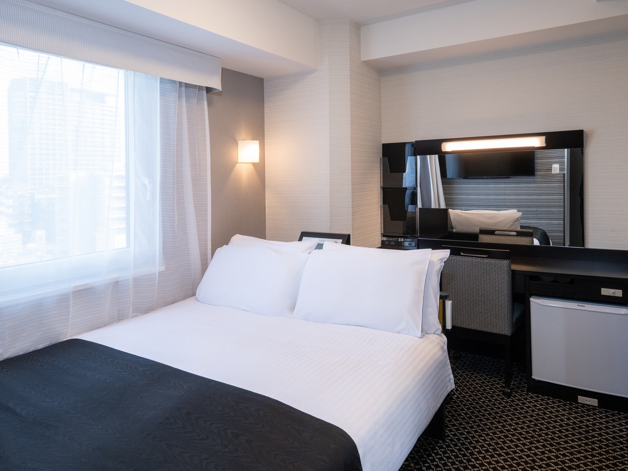 [Free Wi-Fi Connection] Safe and stable connection is available throughout the hotel. Both ID and password are stated on the TV screen in every room.